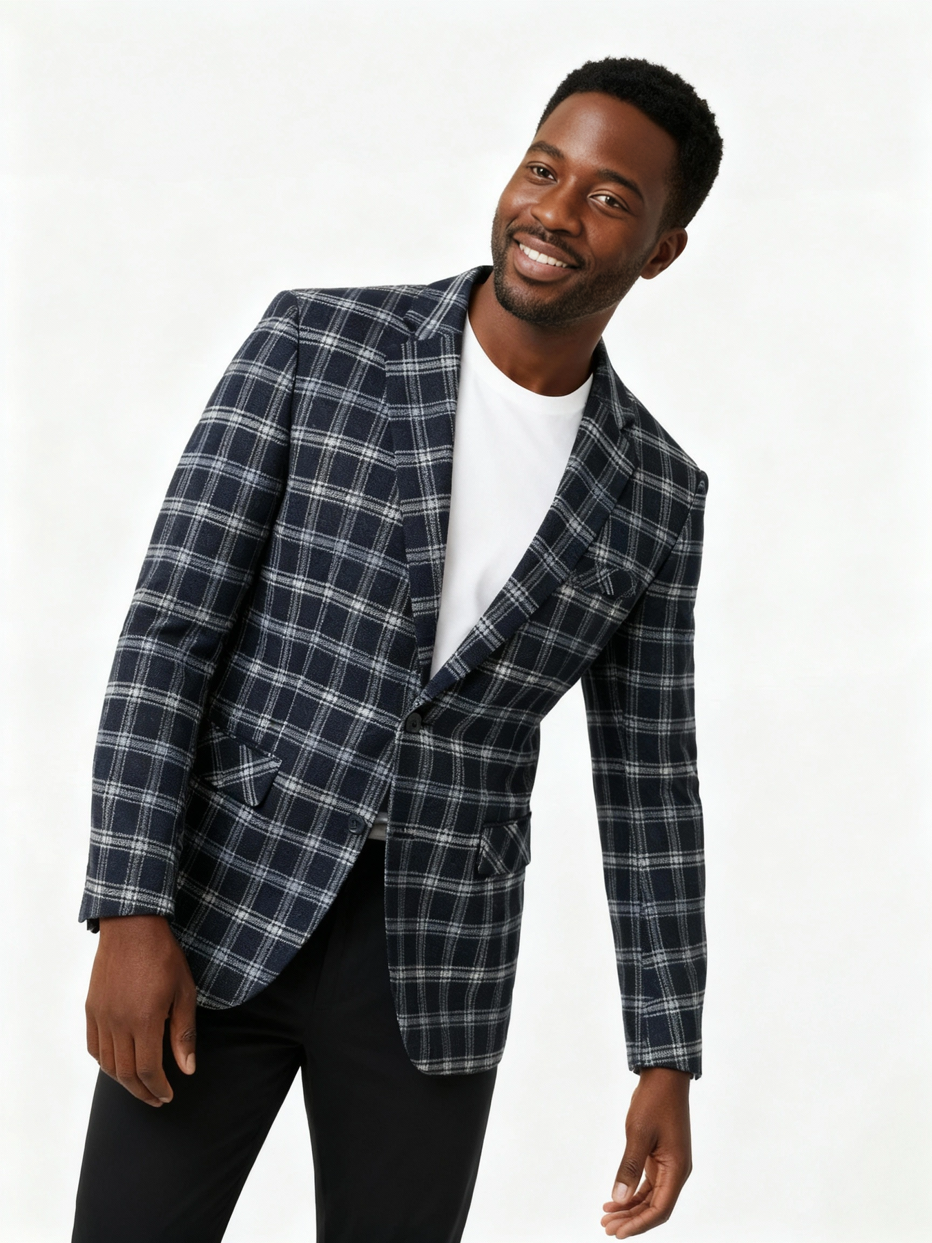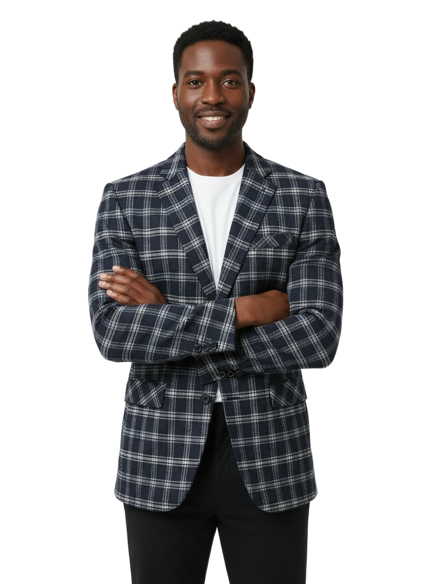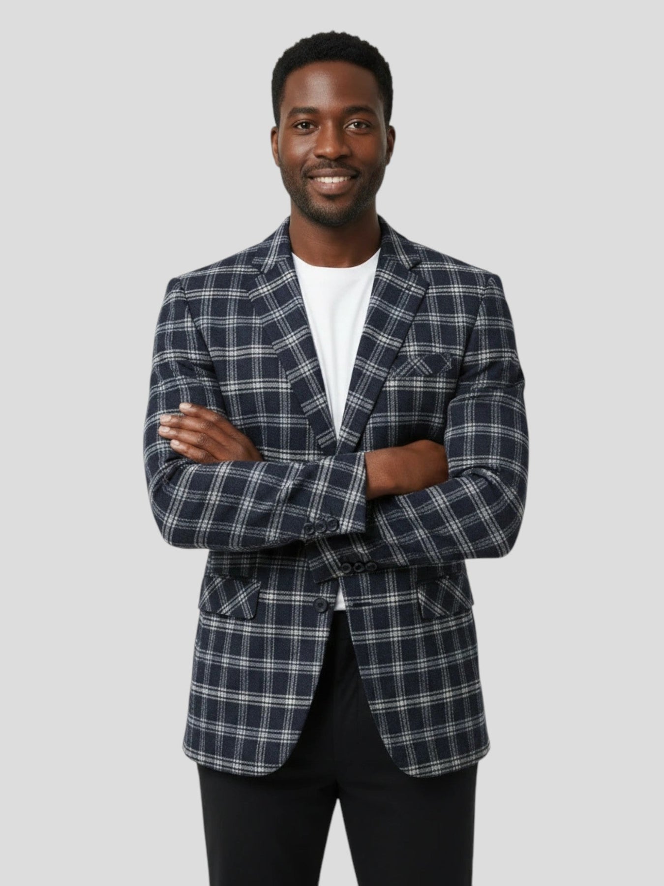 Een moderne blazer die Italiaanse maatwerkwortels mengt met de stedelijke verfijning van Londen — ontworpen voor de man die waarde hecht aan subtiele stijl, gestructureerde elegantie en veelzijdige verfijning.