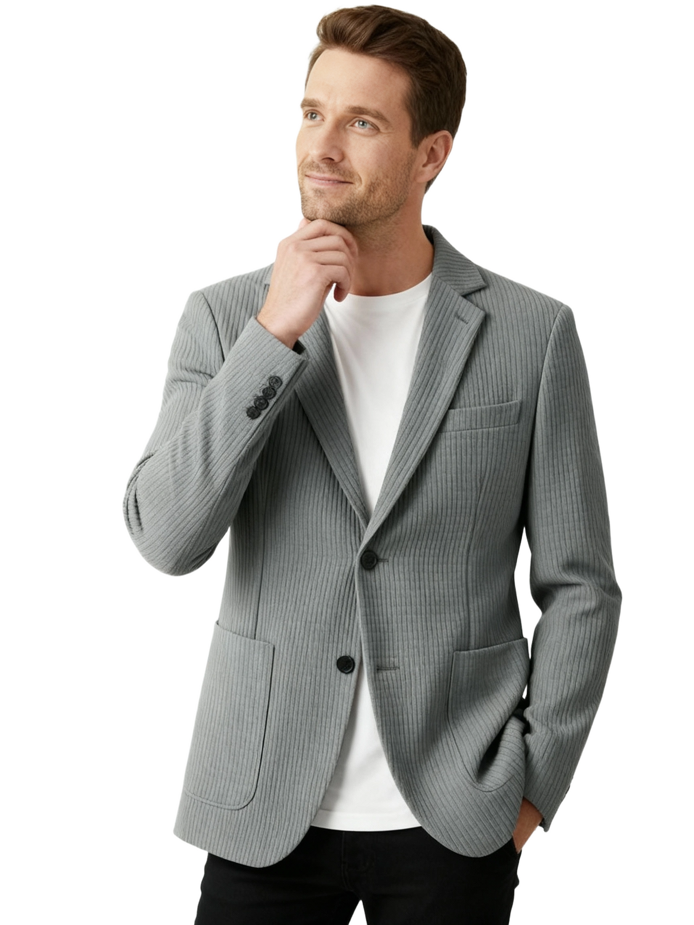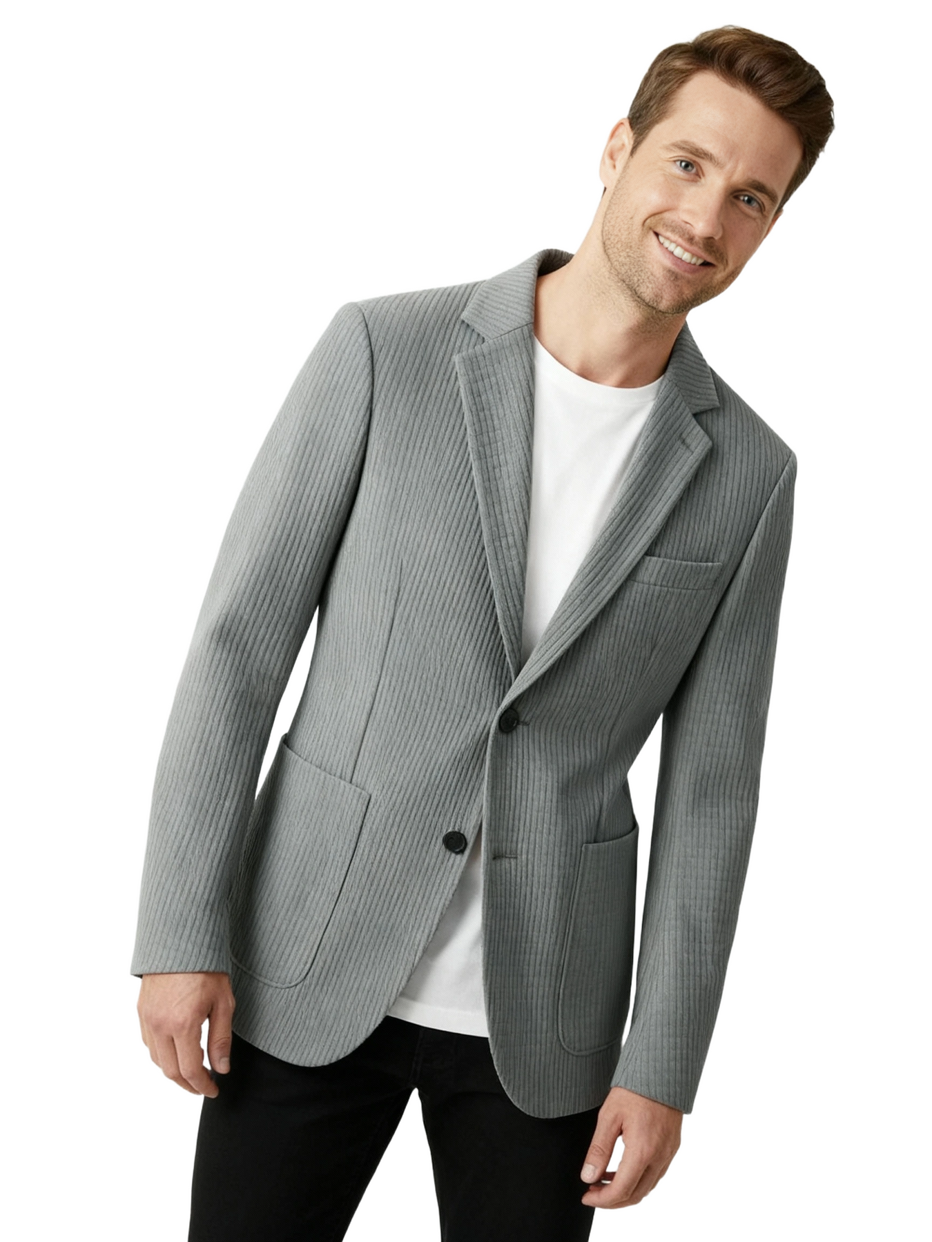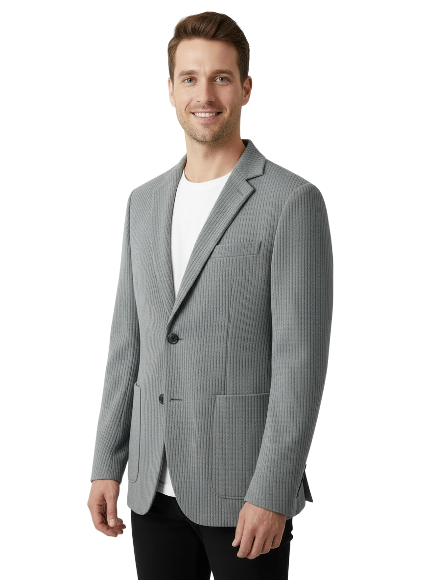 Een moderne blazer die Italiaanse maatwerktradities mengt met Londense verfijning — ontworpen voor de man die klassieke elegantie en stedelijke veelzijdigheid waardeert.
