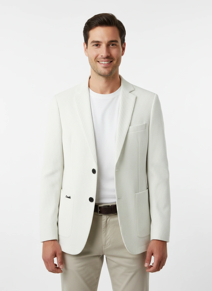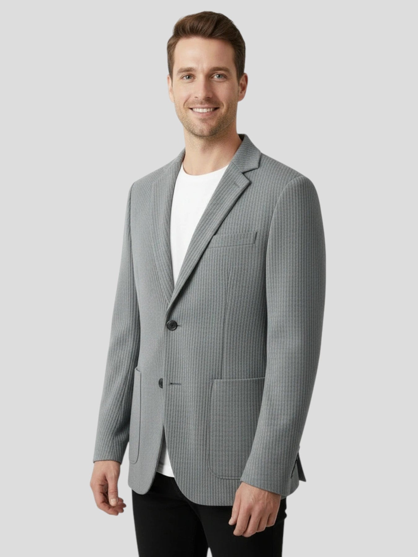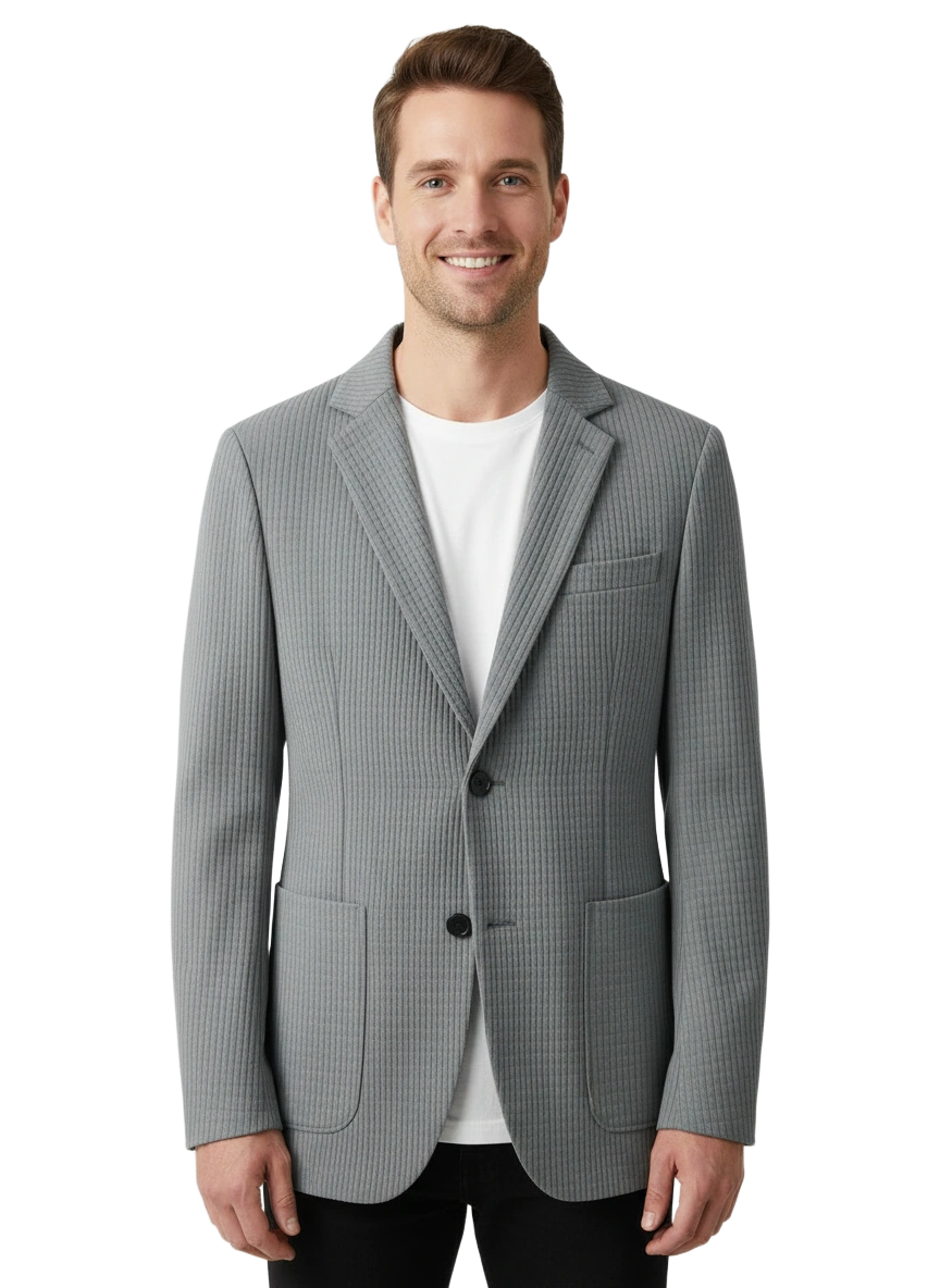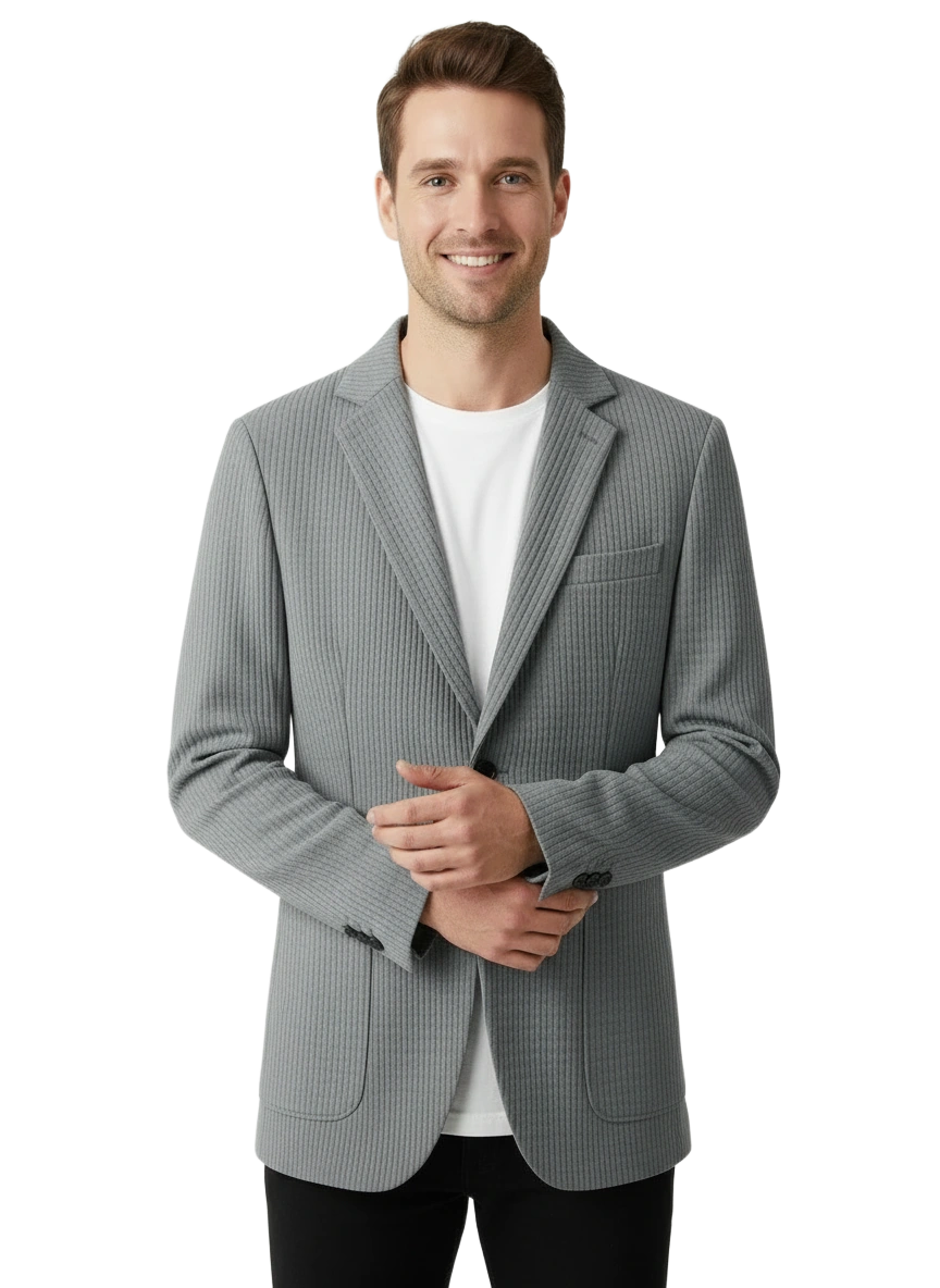 Een moderne blazer die Italiaanse maatwerktradities mengt met Londense verfijning — ontworpen voor de man die klassieke elegantie en stedelijke veelzijdigheid waardeert.