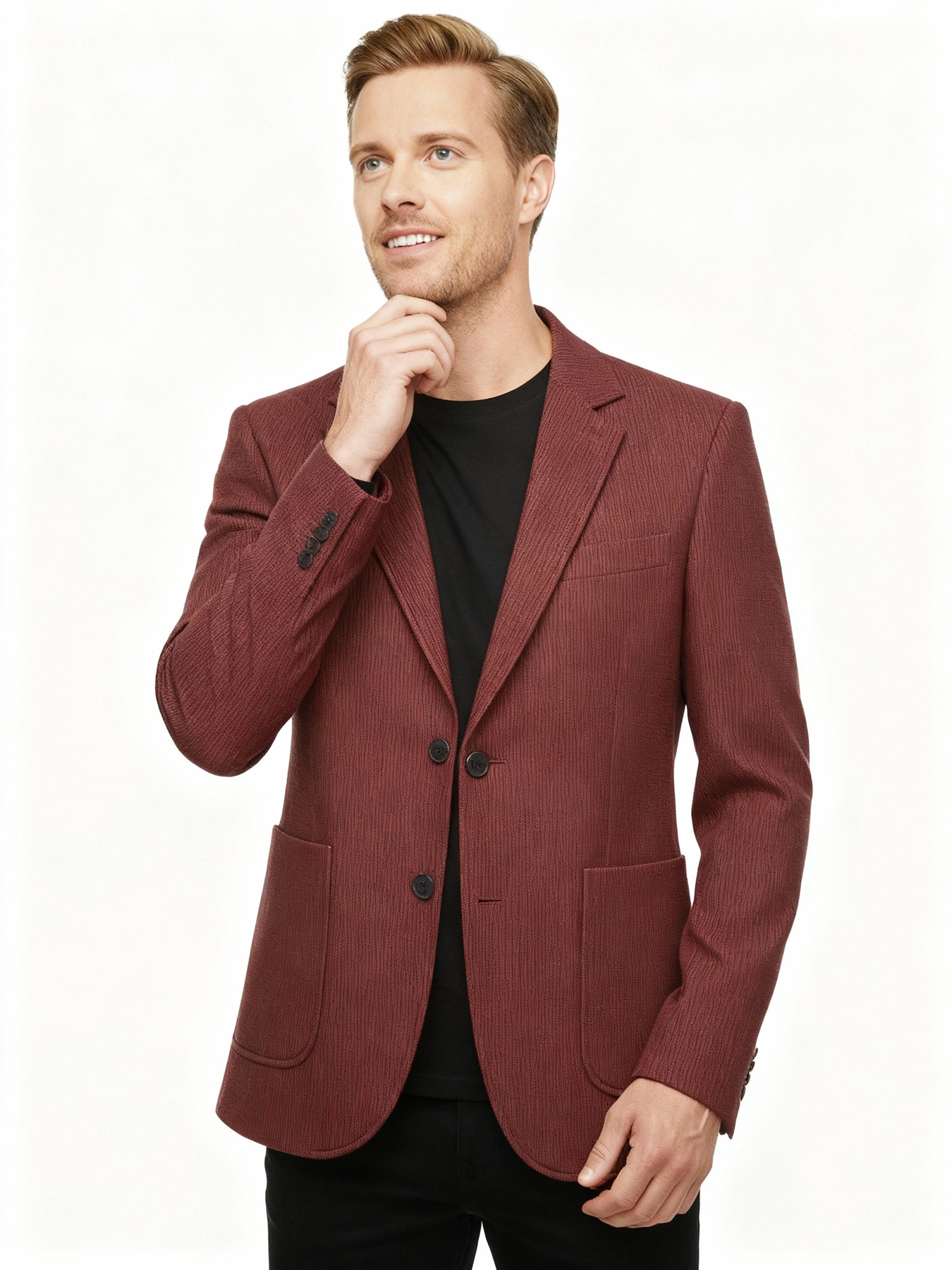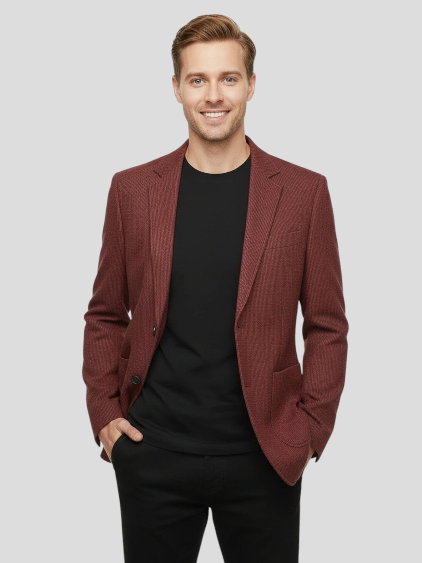Een moderne blazer vervaardigd met Italiaanse precisie en gevormd door de schone, zelfverzekerde stijl van Londen.
