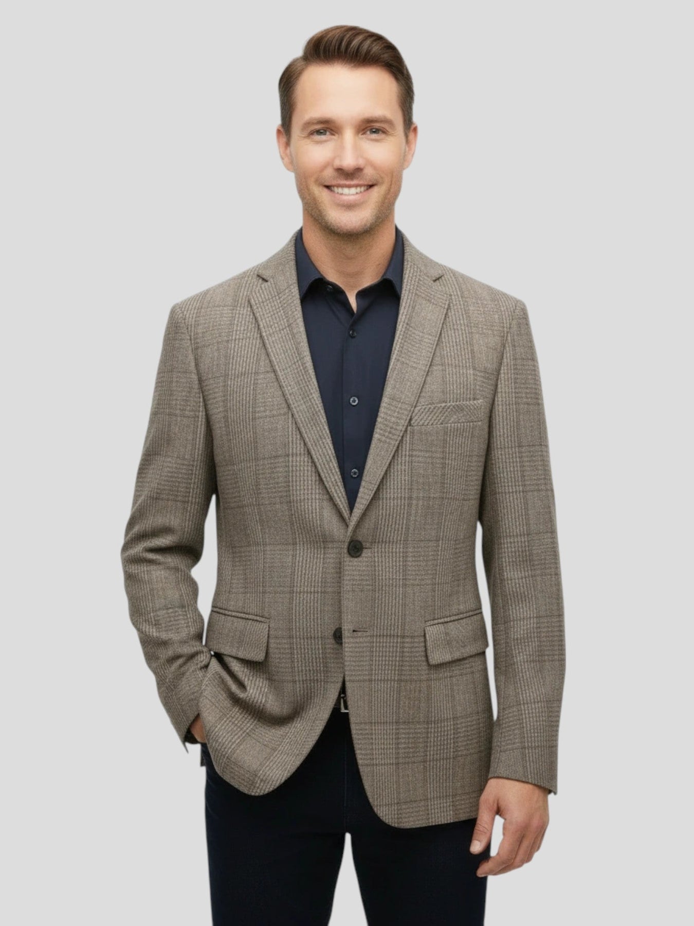 Een moderne blazer die Italiaanse maatwerktraditie mengt met Londense verfijning — ontworpen voor de man die waarde hecht aan verfijnde stijl, stille zelfvertrouwen en veelzijdige elegantie.